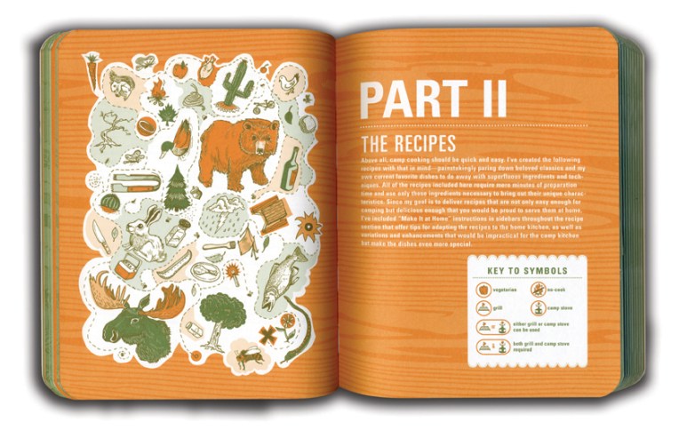 This grain embossed cover with rounded corners was designed to have the look and feel of a contemporary camping handbook.