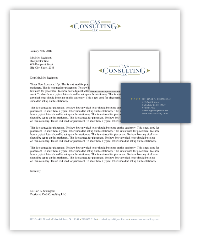 Identity for a nonprofit consultant. Logo, business cards, and letterhead.
