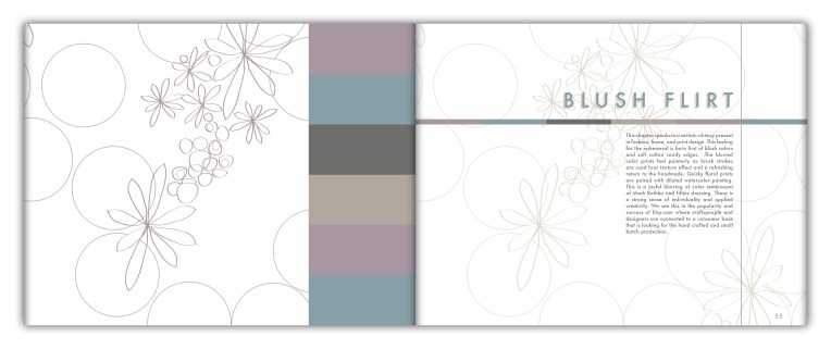 The concept of the 2011 catalog focused on trends that represent the creative process and the artistic hand that were current in fashion print design at the time. Customers were provided with the catalog digitally to economize time, environmental impact, and printing costs. An interactive pdf and Flash versions of the catalog were provided to clients on DVD.