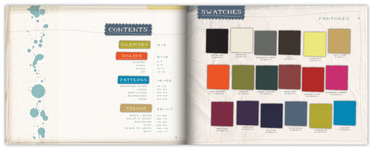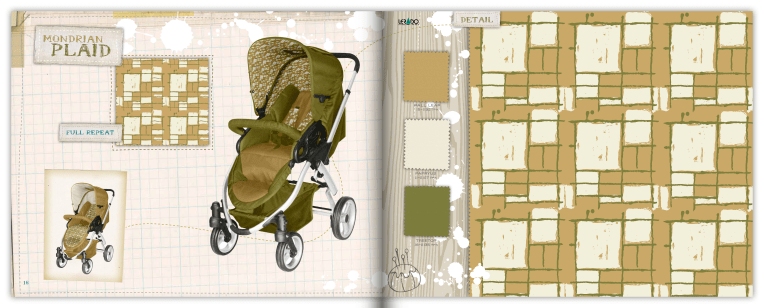 A showcase of the client’s annual color palettes, prints and colorways for their international clientele of stroller brands and manufacturers. Designed to emphasize their attention to current color and trend themes.