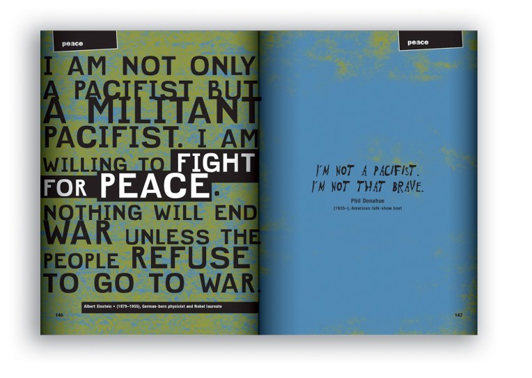 A book of quotes from prominent philosophers, educators, politicians, scientists, artists, clergy, and soldiers from antiquity to today.