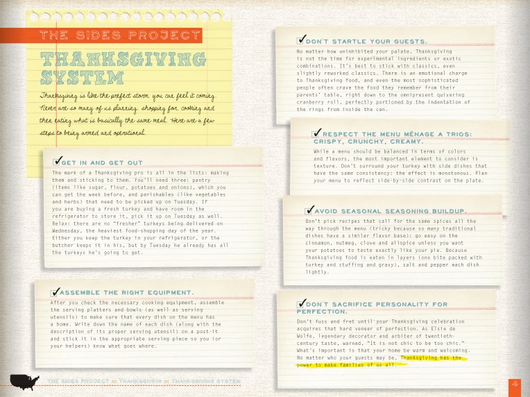 The project was designed to reflect the way the client, the Workshop Kitchen, work on recipes and think about food. A collaboration between food writer Francine Maroukian and chef Tony Iazzi, the book takes a look at immigration patterns and how they have shaped American regional dishes and in this case the most American holiday.